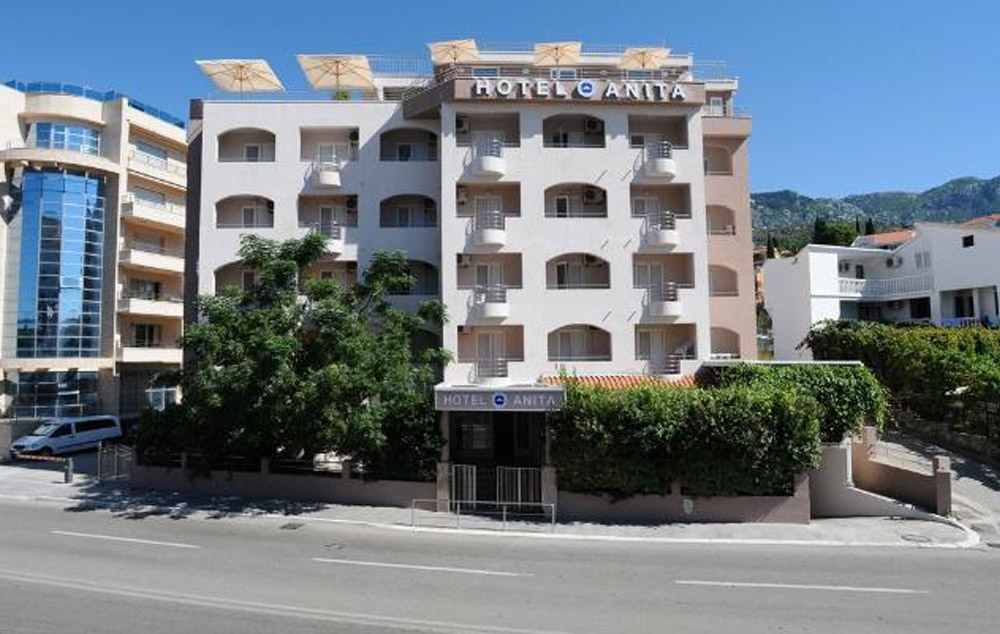 HOTEL ANITA ** / Bečići je smeštena u blizini hotela Splendid. Objekat čine: prizemlje, I, II i III sprat i raspolaže sa 50 udobnih ležaja u dvokrevetnim sobama (francuski ležaj) sa terasama, TV, TWC, tipa studio (frižider, rešo, džezva, šoljice za kafu i čaše) i klima uređajima (korišćenje uračunato u cenu). Sobe se čiste svakodnevno kada se vrši i zamena peškira. Sve sobe imaju pogled na more. Ishrana i ugostiteljske usluge predviđene su u restoranu u prizemlju hotela Anita.