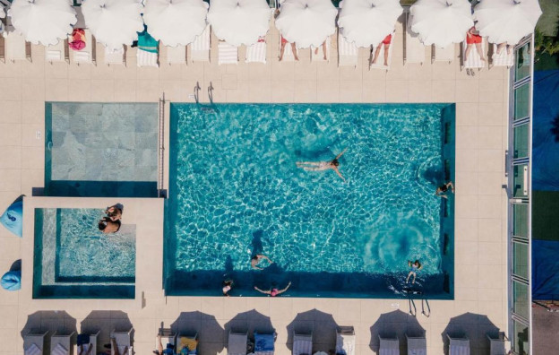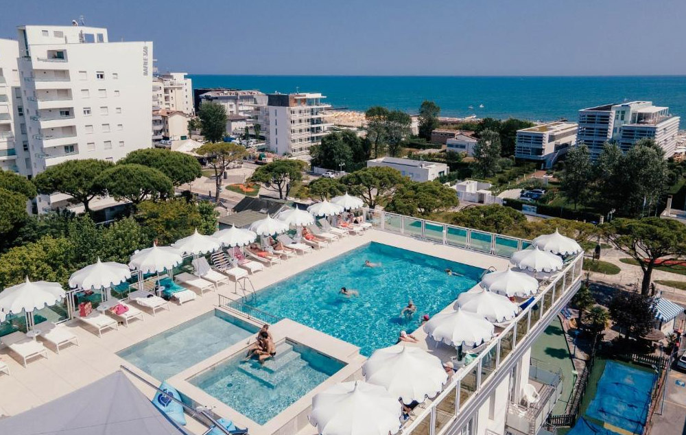 Sadržaj hotela: Recepcija,restoran, lift ,hotelski deo plaže, bazen ,bar parking (po raspoloživosti), terasa za sunčanje, bazen za decu (u kom se voda greje). Hotel ima i wellness centar čije se koriščenje placa 25 eur. Ležaljke na bazenu je moguće rezervisati na recepciji hotela, uz doplatu.