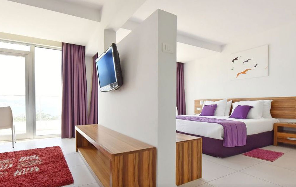 Opis: balkon ili terasa, dva odvojena kreveta ili bračni krevet, kupatilo sa tuš kabinom ili samo tuš, fen za kosu, sef, minibar, TV, klima.