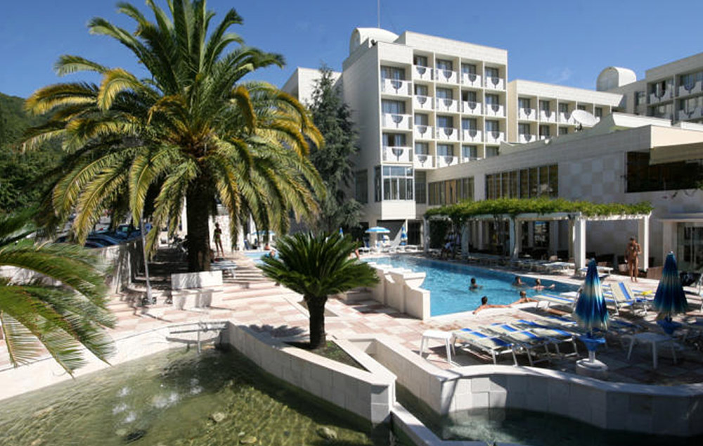 Sadržaj: Kristalni restoran, bife integral, kafe-restoran, restoran “Amfora”, dve restoranske bašte, aperitiv bar “Akvarius”, loby bar, noćni klub, Kongresni centar Mediteran, sopstveni deo plaže, bar na plaži, plažni restoran-picerija “Azzurro”, dečiji “aqua fun” – park na plaži Welness & Spa centar ima zatvoreni bazen sa dva whirlpool-a, dva djakuzija i više hidromasažnih kada i kabina, talasoterapija, razne saune, solarijum, tuševi, svlačionice sa boksovima, fitnes centar, centar za masažu, kozmetički salon, koktel bar. Od sadržaja na otvorenom hotel ima otvoreni bazen sa whirpool-om, dečiji bazen, fontane. Posebna atrakcija ovog kompleksa je Aqua park površine 7500 m2 sa šest bazena, 10 tobogana, brzom rekom 200 m, tri ugostiteljska objekta, platoima za sunčanje, fontanama, zelenom oazom.