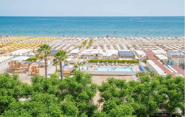 Položaj : Hotel se nalazi u mestu Riccione, od stanice gradskog autobusa udaljen je 20 m, a od plaže 30 m.Korišćenje ležaljki i suncobrana je uključeno u cenu aranžmana ( 2 ležaljke i suncobran po sobi).