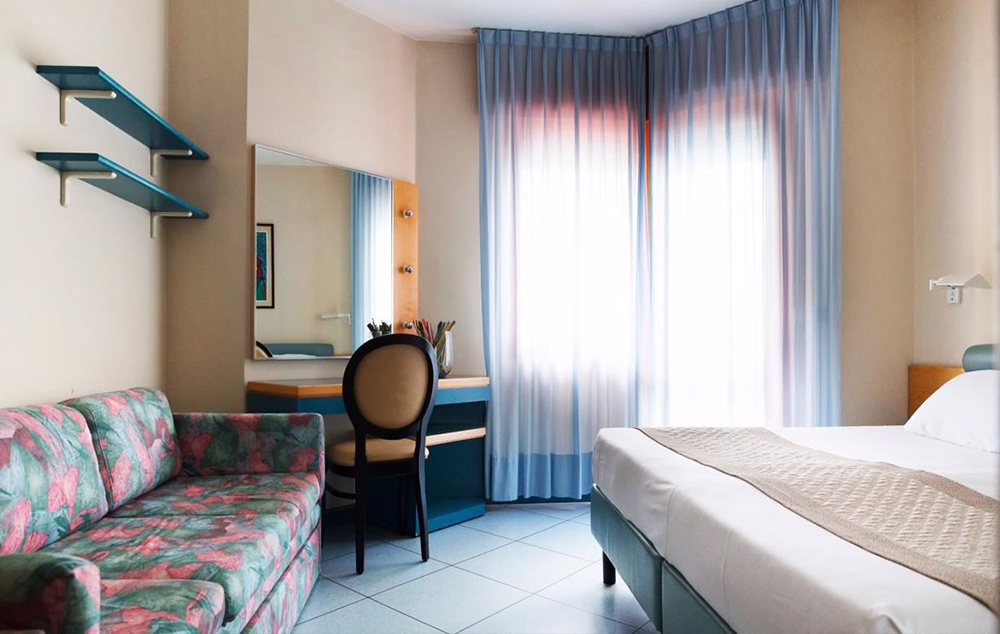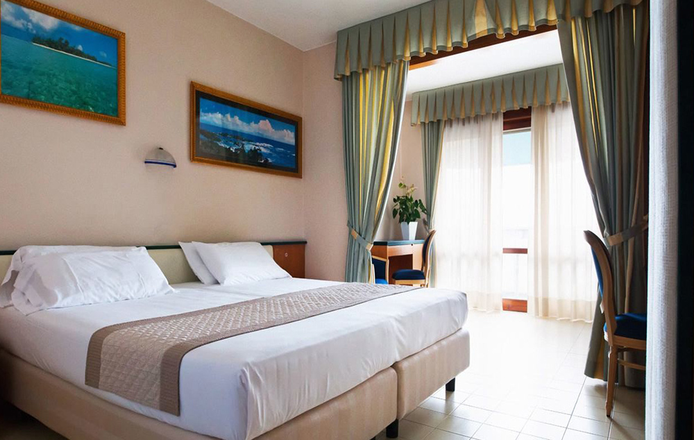 Sobe: Sve sobe imaju kupatilo, fen, klimu, sef, frižider, Wi-Fi, TV i balkon. Standardna soba: za max. 3 osobe; dva standardna ležaja ili francuski ležaj i sofa ili pomoćni krevet.