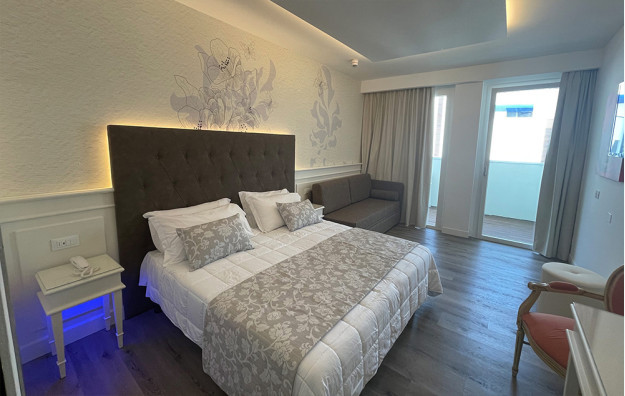Deluxe 2/3 + krevetac-veličine 18 m2 - renovirana soba sa balkonom i delimičnim pogledom na more.