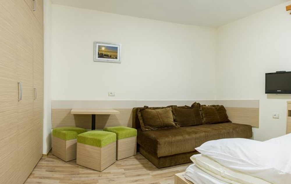 Svi apartmani sadrže kupatilo, dnevni boravak, televizor sa plazma ekranom. Namenjeni su za smeštaj 2-6 osoba. Sastoje se od predsoblja, dnevnog boravka, spavaće sobe i kupatila. Apartmani tipa A imaju 25 m2 a tipa B 35m2.