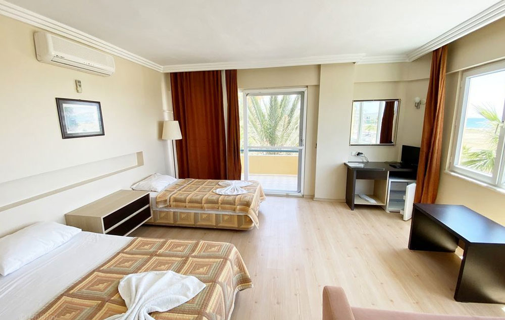 Sobe: standardne sobe dvokrevetne za maksimalno četiri osobe, opremljene sa dva standardna ležaja ili francuskim ležajem i jednim ili dva pomoćna ležaja od kojih jedan može biti i sofa na razvlačenje. Sobe poseduju kupatilo (Tus WC), fen za kosu, klima uredjaj, mini-bar (upotreba uz doplatu), SAT TV, balkon. Sve sobe su sa delimičnim ili direktnim pogledom na more.