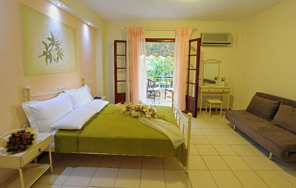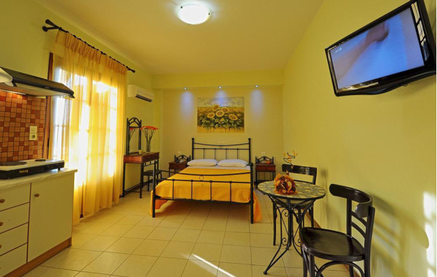 Opis: Smeštajne jedinice u našoj ponudi su dvokrevetni i trokrevetni studiji, a nalaze se u prizemlju i na drugom spratu . Svaki studio poseduje opremljen kuhinjski deo, kupatilo/wc, peškire, terasu (jedan studio ima sopstvenu terasu, ali nema direktan izlaz na nju), TV, WiFi internet i klima uređaj (uz doplatu na licu mesta od 5€ dnevno).