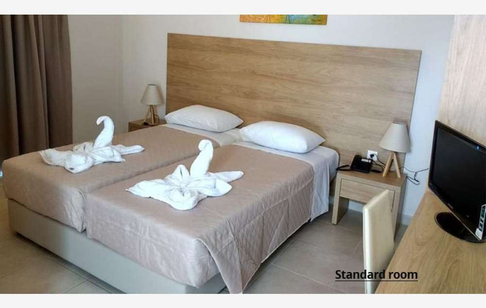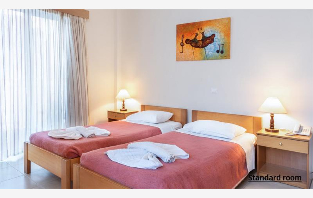 Hotel raspolaže sa 42 smeštajne jedinice. Sve sobe sadrže klima uređaj (uz doplatu 5 evra dnevno), SatTV, telefon, Wi-fi internet besplatno, mini frižider, sef (besplatno), kupatilo, balkon ili terasu. U ponudi su standardne sobe koje sadrže francuski ili dva odvojena ležaja i primaju maksimalno dve osobe.
