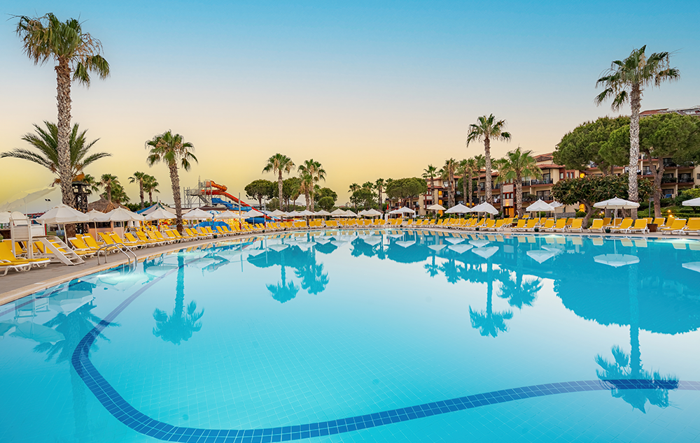 Hotelski sadržaj: Recepcija, glavni restoran, i 3 a’la carte restorana (turski, italijanski i riblji-plaćaju se), 4 bara, unutrašnji bazen, 2 otvorena bazena, 2 vodena tobogana, dečiji bazen, dečiji klub (od 4-12 god.), dnevna i večernja animacija, sportski tereni za tenis, fudbal i odbojku na plaži, stoni tenis, pikado, tursko kupatilo, sauna, fitnes centar.