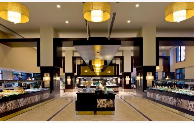 Hotelski sadržaj: Recepcija, 2 glavna restorana, 2 a la carte restorana, dijetalni meni, 13 barova, 2 unutrašnja i 5 spoljašnjih bazena, 5 dečijih bazena, 6 đakuzija, akva park sa 19 tobogana (10 dečijih), bioskopska sala, dnevne i večernje animacije, mini klub (za decu od 4-12 godina), teenage klub (za decu od 13-17 godina), mini disko, igraonica, aerobic u vodi, bocanje, pikado, stoni tenis, odbojka na pesku, teniski teren, košarka, tursko veče, hamam, sauna, parna soba, teretana, bilijar (uz doplatu), wi fi (u lobiju).