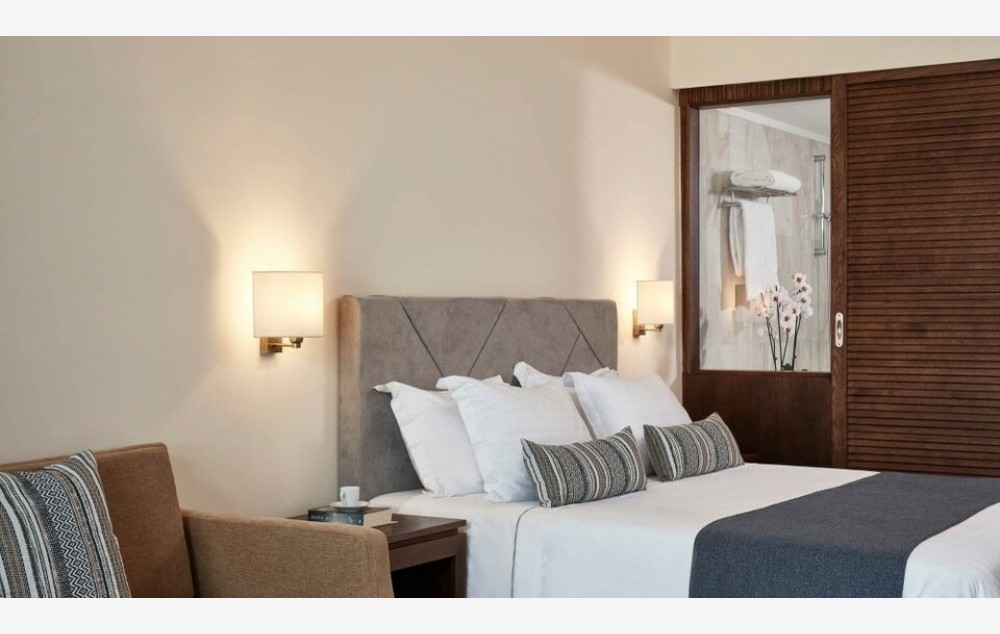 Standard room main building bay view-23 m2, sa pogledom na Marinu Guviju i zelena brda Krfa, ima bračni ili dva odvojena kreveta sa sofom na razvlačenje za 3. osobu.