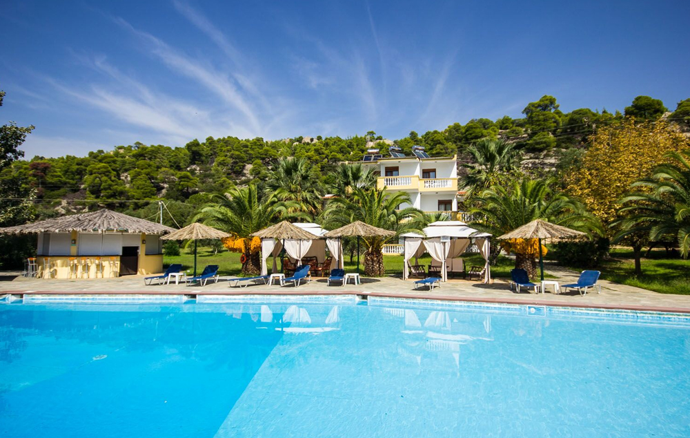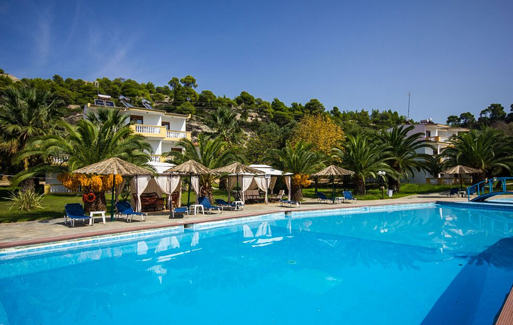 LOKACIJA: Smešten u samom srcu Sitonije, hotel Koviou Holiday Village nudi jedinstven doživljaj i nezaboravan boravak u prijatnom delu Egejskog mora. Okružen prelepim pejzažima, palmama, prijatnim mirisom maslina, i fantastičnim pogledom na zalazak sunca, pružiće vam odmor iz snova. Prostire se na površini od 14.000m². Nalazi se na 250 m od plaže ( podzemni tunel), 6 km od Nikitija i 13km od Neos Marmarasa na području zvanom Elija.