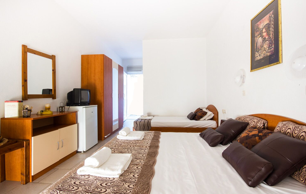 Bungalow-30 m2, novoizgrađeni za sezonu 2022, nalaze se u prizemlju sa direktnim izlazom na baštu, ovi bungalovi se sastoje od odvojene spavaće sobe sa bračnim krevetom i manje sobe sa 2 kreveta za jednu osobu.