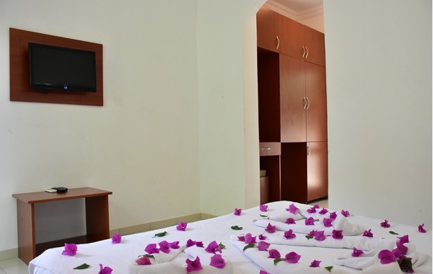 Soba: 45 standardnih soba veličine između 22-25m² sa kupatilom (Tuš WC i fen za sušenje kose), TV, klima uređaj, telefon, francuski balkon. Maksimalno borave 2 odrasle osobe i 2 dece do 13 godina.