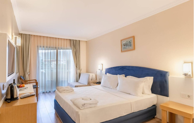 Smeštaj: Hotelski kompleks čine glavna sedmospratna zgrada i pet dvospratnih vila koje imaju ukupno 358 soba. U glavnoj zgradi se nalaze standardne sobe sa pogledom na kopno ili more i porodične sobe, dok se u vilama nalaze vila standardne sobe i vila porodične sobe. Hotel poseduje i sobe za osobe sa posebnim potrebama.