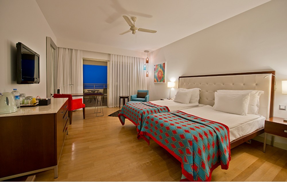 Deluxe soba bočni pogled more (38-40m2). Maksimalno mogu da borave dve odrasle osobe i dete do 12 godina ili tri odrasle osobe.