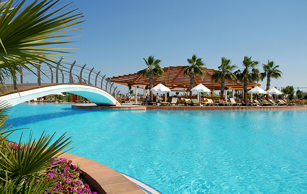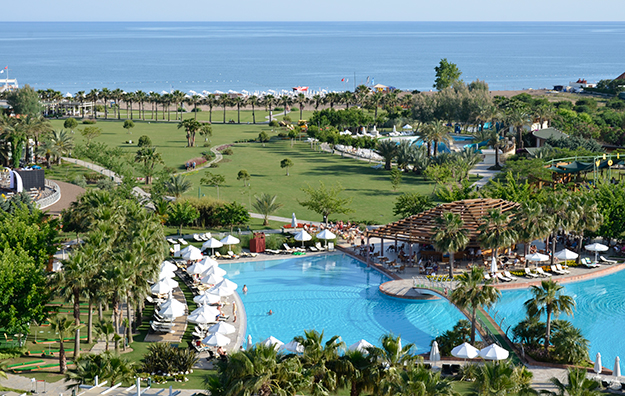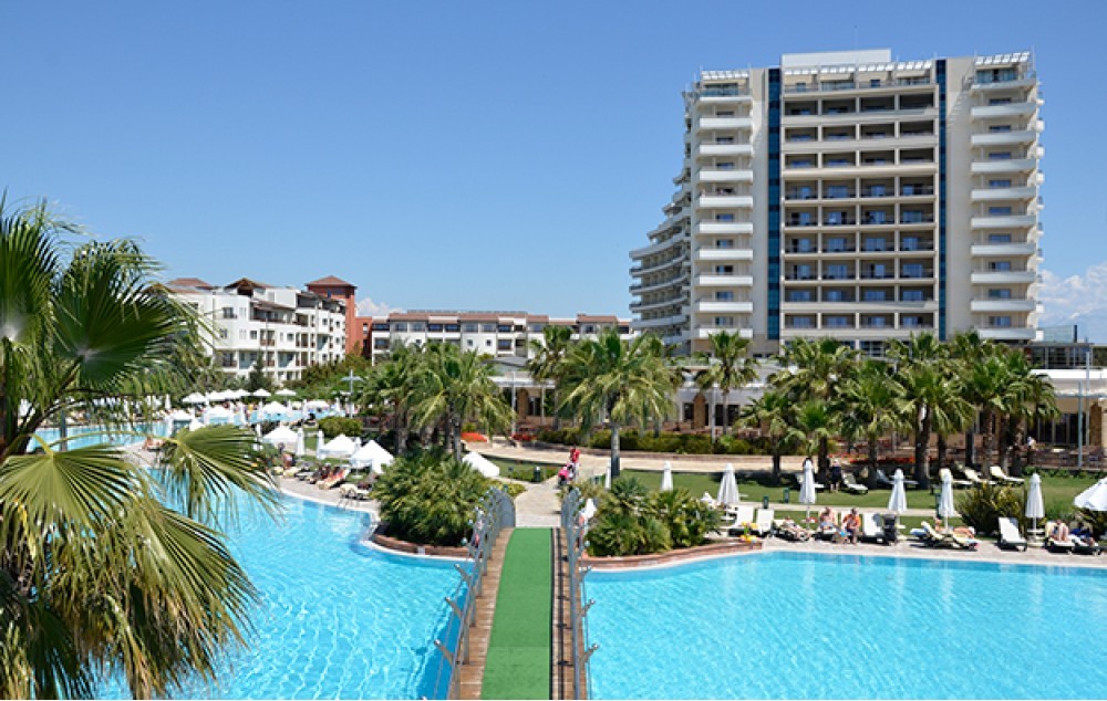 Hotelski sadržaj: Recepcija, 2 glavna restorana, 2 a la carte restorana, dijetalni meni, 13 barova, 2 unutrašnja i 5 spoljašnjih bazena, 5 dečijih bazena, 6 đakuzija, akva park sa 19 tobogana (10 dečijih), bioskopska sala, dnevne i večernje animacije, mini klub (za decu od 4-12 godina), teenage klub (za decu od 13-17 godina), mini disko, igraonica, aerobic u vodi, bocanje, pikado, stoni tenis, odbojka na pesku, teniski teren, košarka, tursko veče, hamam, sauna, parna soba, teretana, bilijar (uz doplatu), wi fi (u lobiju).