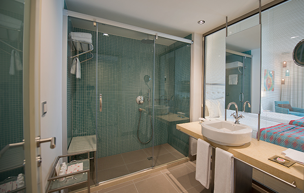 Corner suite sa đakuzijem pogled more (48-50m2). Maksimalno mogu da borave dve odrasle osobe i dvoje dece do 12 godina ili tri odrasle osobe.
