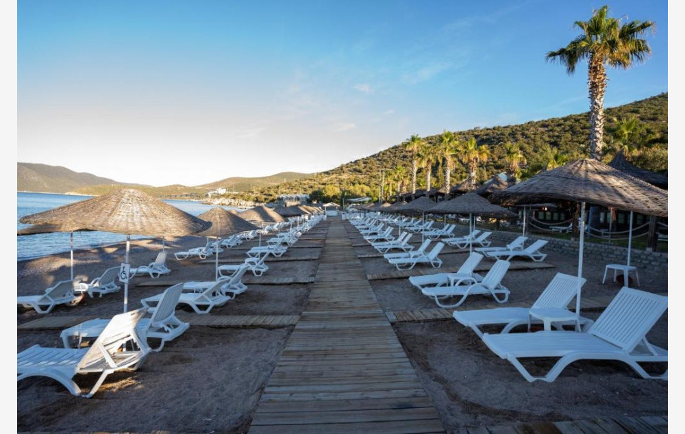 Položaj: Hotel se nalazi u mestu Jaliciftlik, na svojoj plaži, okružen zelenilom. Od centra Bodruma je udaljen 16 km, dok je od aerodroma udaljen oko 40 km. Otvoren je 1989.godine, a poslednji put je renoviran 2018.godine. Prostire se na površini od 17.000 m².