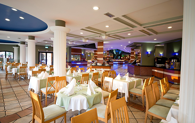 Hotelski sadržaj: Hotel poseduje glavni restoran, 2 a la carte restorana (turski i riblji-korišćenje jednog besplatno u toku boravka uz obaveznu rezervaciju), 2 bara, spoljašnji i unutrašnji bazen za odrasle i decu, večernju animaciju, dečiji klub 8za decu od 4-12 godina), dečija igraonica, mini disko, tursko kupatilo, sauna, masaže, fitness, aerobic, stoni tenis, bilijar, boćanje, pikado, wi fi.