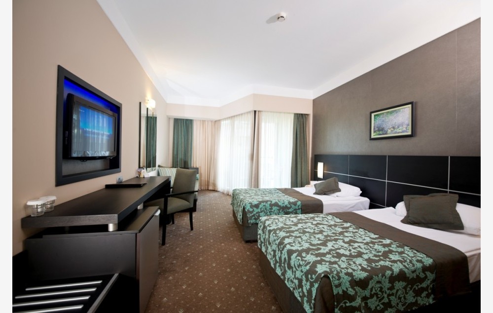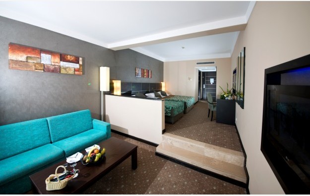 Hotelski sadržaj: Hotel poseduje glavni restoran, 2 a la carte restorana (turski i riblji-korišćenje jednog besplatno u toku boravka uz obaveznu rezervaciju), 2 bara, spoljašnji i unutrašnji bazen za odrasle i decu, večernju animaciju, dečiji klub 8za decu od 4-12 godina), dečija igraonica, mini disko, tursko kupatilo, sauna, masaže, fitness, aerobic, stoni tenis, bilijar, boćanje, pikado, wi fi.