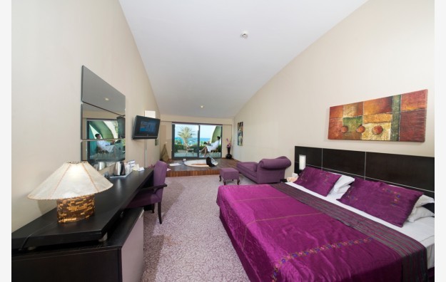 Smeštaj: Hotelski kompleks čine glavna sedmospratna zgrada i pet dvospratnih vila koje imaju ukupno 358 soba. U glavnoj zgradi se nalaze standardne sobe sa pogledom na kopno ili more i porodične sobe, dok se u vilama nalaze vila standardne sobe i vila porodične sobe. Hotel poseduje i sobe za osobe sa posebnim potrebama.