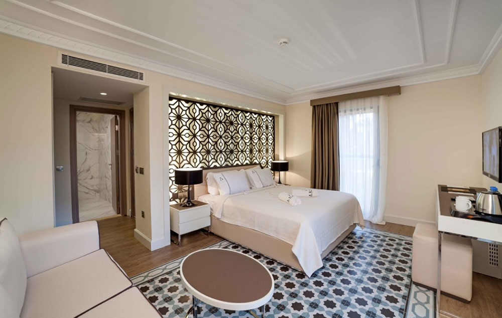 Sadržaj: glavni restoran, 2 a la carte restorana (turski i riblji – jednom tokom boravka besplatno), 6 barova, zatvoreni bazen, otvoreni bazen, dečiji bazen sa toboganima, Aqua park, dečije igralište, dečiji mini klub (4-12 godina), mini disco, Spa centar, usluga pranja i peglanja veša, teretana, dnevna i večernja animacija, teniski teren, mini-fudbal, stoni tenis, pikado, odbojka, sportovi na vodi, tursko kupatilo, masaža (uz doplatu), sauna, disco, market, butici, TV sala, frizer, wifi.