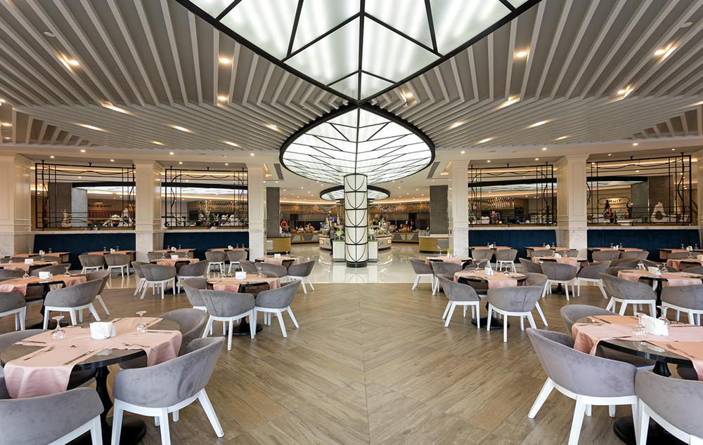 Hotelski sadržaji: Recepcija, glavni restoran, 5 a’la carte restorana (italijanski, riblji, meksički, dalekoistočni i turski-besplatno jednom u toku boravka uz rezervaciju), dijetalni meni, dečiji meni, 16 barova, poslastičarnicu, kafe korner, 13 bazena za odrasle od kojih je jedan sa slanom vodom, 5 dečijih bazena od kojih je jedan sa slanom vodom, akva park sa toboganima za odrasle i decu, dečije igralište, mini klub (4-12 godina), luna park, dečije igralište, mini disko, dnevna i noćna animacija za odrasle i decu, spa centar, sauna, teretana, tursko kupatilo, aerobik, akvabik, đakuzi, streličarstvo, 2 teniska terena, mini golf, košarka, odbojka na pesku, pikado, mini fudbal, stoni tenis, šah, kuglanje, bioskop, wi fi.