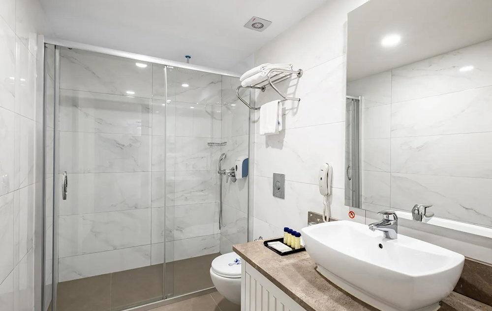 Svaka soba ima: Kupatilo sa tušem/wc, klimu, fen, SAT/TV, telefon, mini bar (samo voda besplatno), sef (uz doplatu), balkon.