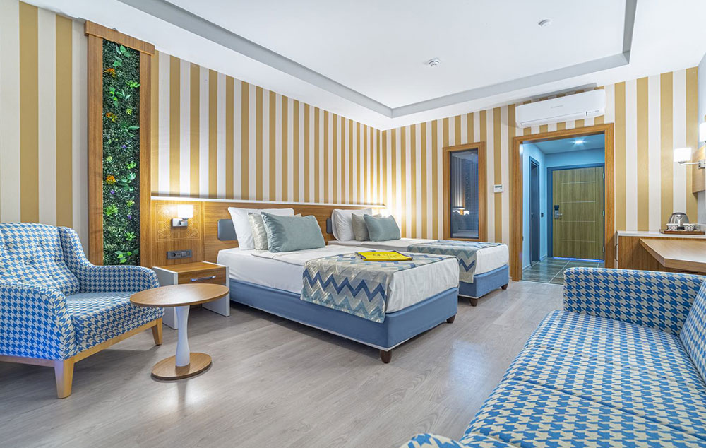 Family connection sobe (25-30m2). Sastoje se od dve spavaće sobe odvojene vratima koje sadrže francuske ležajeve ili odvojene krevete. Dodatni ležaj je sofa ili krevet na rasklapanje. Maksimalno može da boravi pet odraslih osoba.
