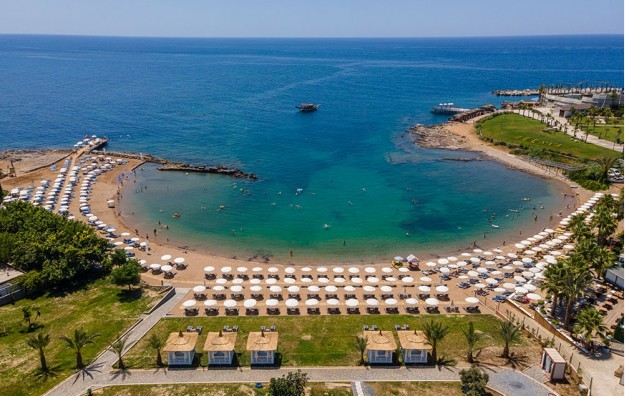 Plaža: Hotelska plaža (deo na Kleopatrinoj plaži )je udaljena 500m od hotela. Gostima je na raspolaganju shuttle bus koji vozi do plaže. Ležaljke i suncobrani koriste bez doplate. Peškiri za plažu su besplatni, svaka zamena se dodatno plaća. Bar na plaži se dodatno plaća.
