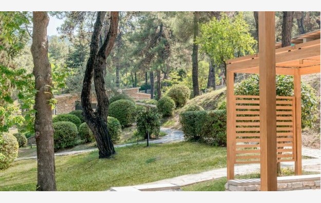 Superior Family Suite-44 m2, smešteni u prostranom vrtu Makriammos, novorenovirani porodični apartmani imaju dve nezavisne spavaće sobe sa bračnim ili dva odvojena kreveta i sofom na razvlačenje, koje dele zajedničko kupatilo sa tušem i nameštenu verandu sa pogledom na šumu.