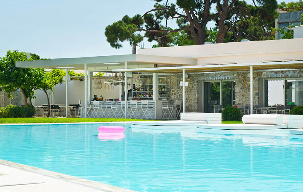 Junior suite: 36 m2, ima bračni krevet ili dva odvojena kreveta i prostor za sedenje s kaučem na razvlačenje za treću osobu, namešten balkon i pogled na bazen, vrtove ili more, pogodan za 3 osobe..