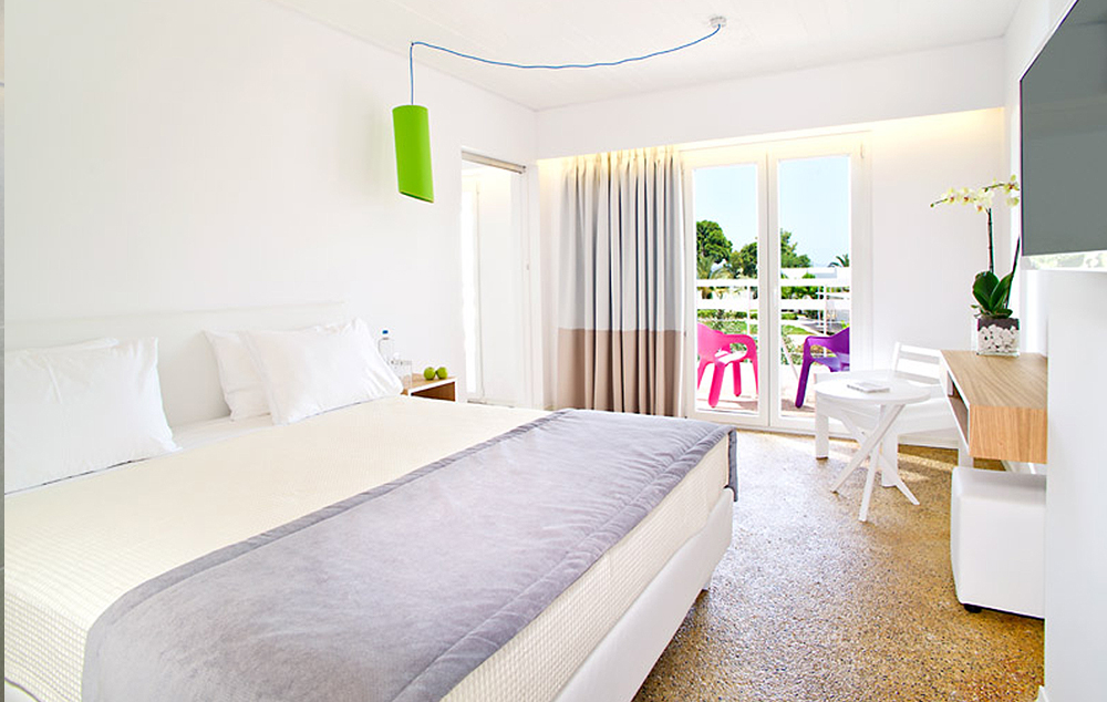 Superior soba: 23 m2, ima bračni krevet ili dva odvojena kreveta i dodatni krevet za treću osobu, namešten balkon i pogled na bazen, vrtove ili more, pogodan za 3 osobe.