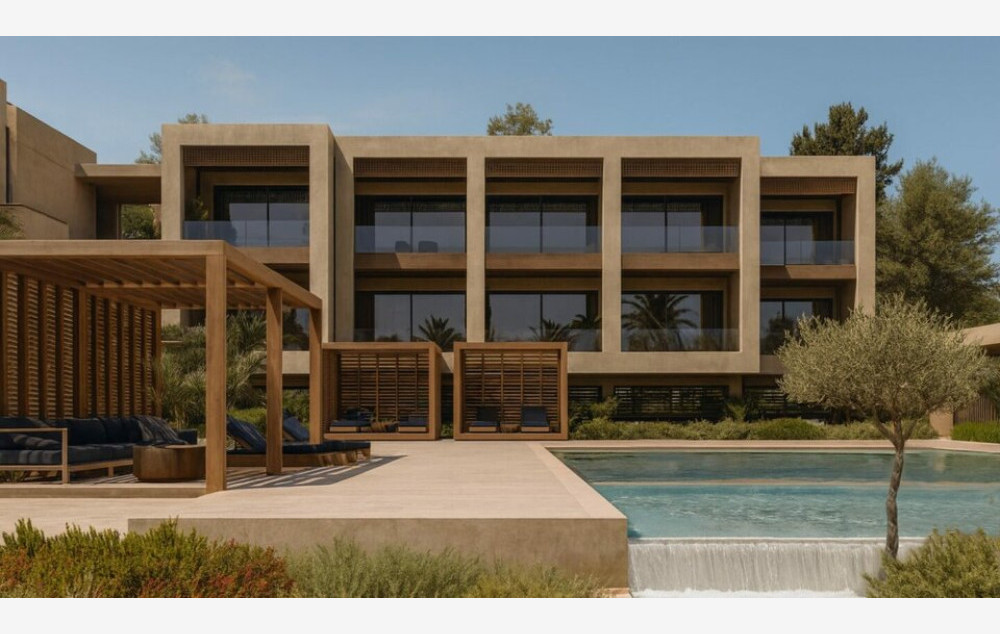 Deluxe Master Suite Sea View - Deluxe Master Suite od 46 m² – s bočnim pogledom na more sadrži king size krevet, udoban kauč s pomoćnim stočićem i dodatni dnevni boravak s udobnom sofom. Dnevni boravak nudi veliku radnu površinu, a sve je uređeno u neutralnoj paleti peščanih tonova koji odražavaju savremeni stil. Privatno kupatilo opremljeno je tušem s efektom kiše, velikim kamenim umivaonikom i WC-om
