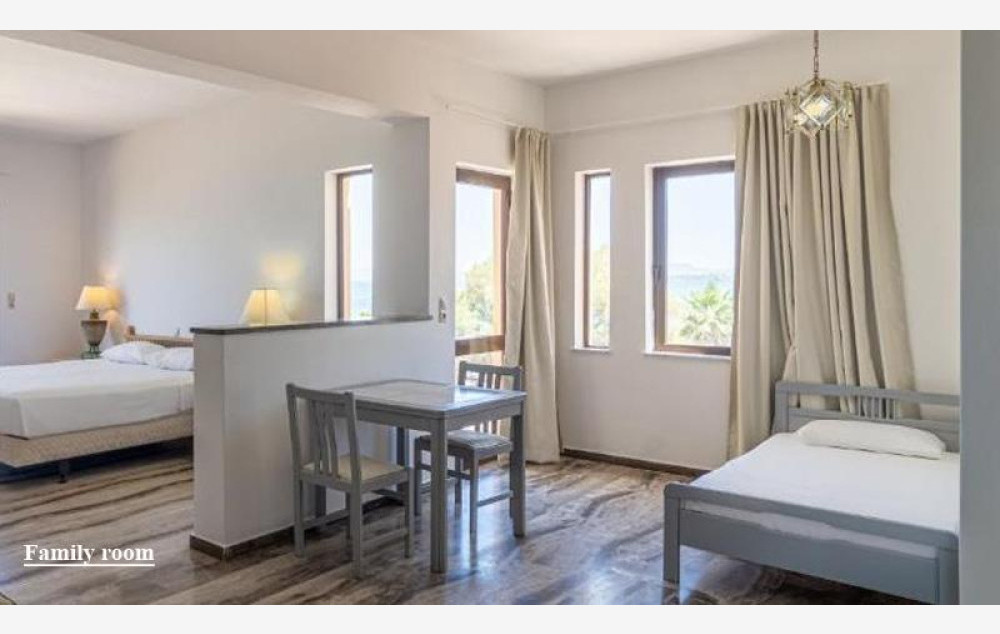 Našim putnicima su na raspolaganju sobe tipa: "standard sea view" i "family open plan". Standard sea view imaju pogled na more, dok "family open plan" imaju delimičan pogled na more i delimično na ulicu. Sobe standard mogu da prime maksimum dve odrasle osobe i jednu bebu, sastoje se iz francuskog ležaja ili dva standardna ležaja, dok porodične sobe mogu da prime maksimum četiri odrasle osobe i bebu, tri odrasle osobe, jedno dete i bebu ili dve odrasle, dvoje dece i bebu (sadrže francuski ili dva standardna ležaja dok treći i četvrti ležaj u porodičnim sobama može biti standardni ili pomoćni ležaj). U porodičnoj sobi beba može da se smesti kao peta osoba. Sobe tipa "standard sea view" i "family open plan" su po svojoj osnovnoj strukturi dvokrevetne, dok ostali ležajevi mogu biti pomoćni. Čišćenje soba se odvija šest puta nedeljno, zamena posteljine jedan put nedeljno, a zamena peškira dva puta nedeljno. Sve sobe su iste opremljenosti i imaju: SAT TV, klima uređaj (besplatno), Wi-fi internet (besplatno), telefon, sef (besplatno), kupatilo sa tuš kadom, set za pripremanje kafe i čaja, ketler, balkon ili terasu. Bebi krevetac je dostupan besplatno (obavezna najava prilikom rezervacije).