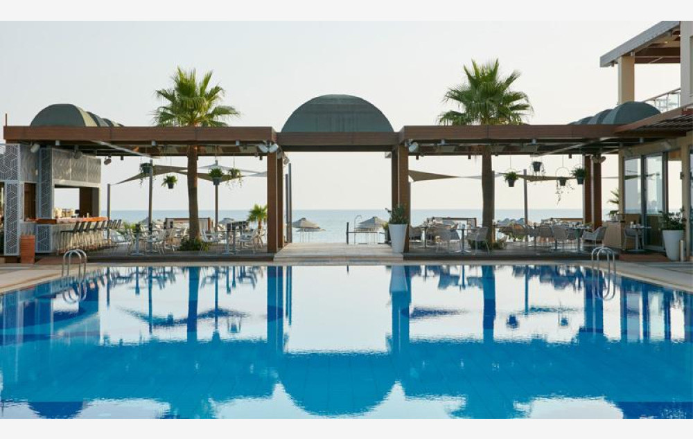 Hotelski kompleks se pruža sve do sopstvene peščane plaže, na kojoj su suncobrani i ležaljke na raspolaganju gostima besplatno.