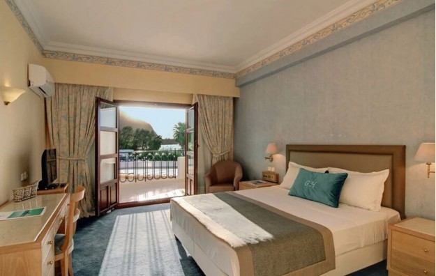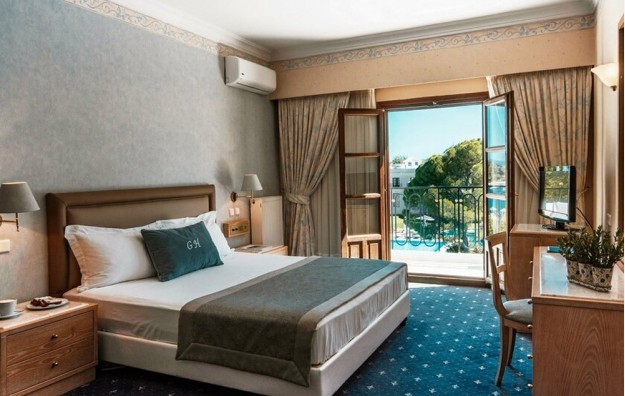 LOKACIJA: Hotel pripada poznatom lancu hotela Mitsis. Nalazi se u mestu Kamena Vurla, koje je poznato po termalnim izvorima. Od aerodroma u Atini udaljen je 150 km i nalazi se preko puta plaže. Plaža je peščano šljunkovita.