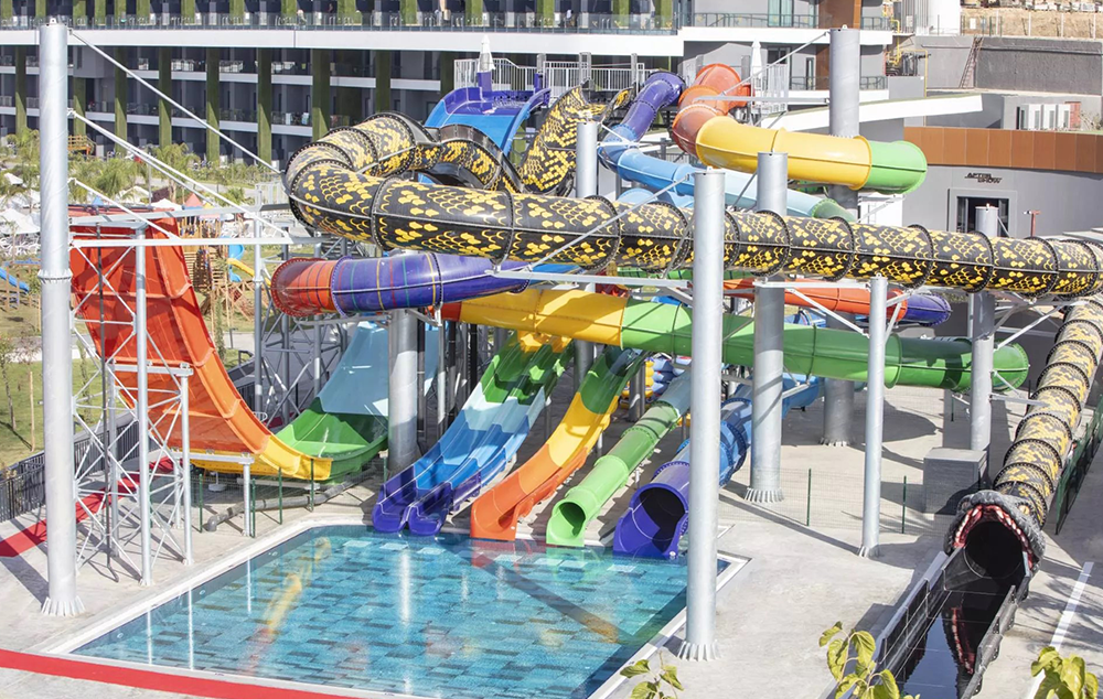 Hotelski sadržaj: Recepcija, glavni restoran, 4 a la carte restorana, 8 barova, bazeni za odrasle i decu, bazeni sa toboganima za decu i odrasle, amfiteatar, animacija, mini klub, igralište, fitnes, tursko kupatilo, sauna, odbojka na plaži, wi fi (u celom hotelu).