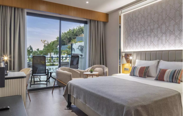 Smeštaj: Hotelski kompleks čine glavna sedmospratna zgrada i pet dvospratnih vila koje imaju ukupno 358 soba. U glavnoj zgradi se nalaze standardne sobe sa pogledom na kopno ili more i porodične sobe, dok se u vilama nalaze vila standardne sobe i vila porodične sobe. Hotel poseduje i sobe za osobe sa posebnim potrebama.