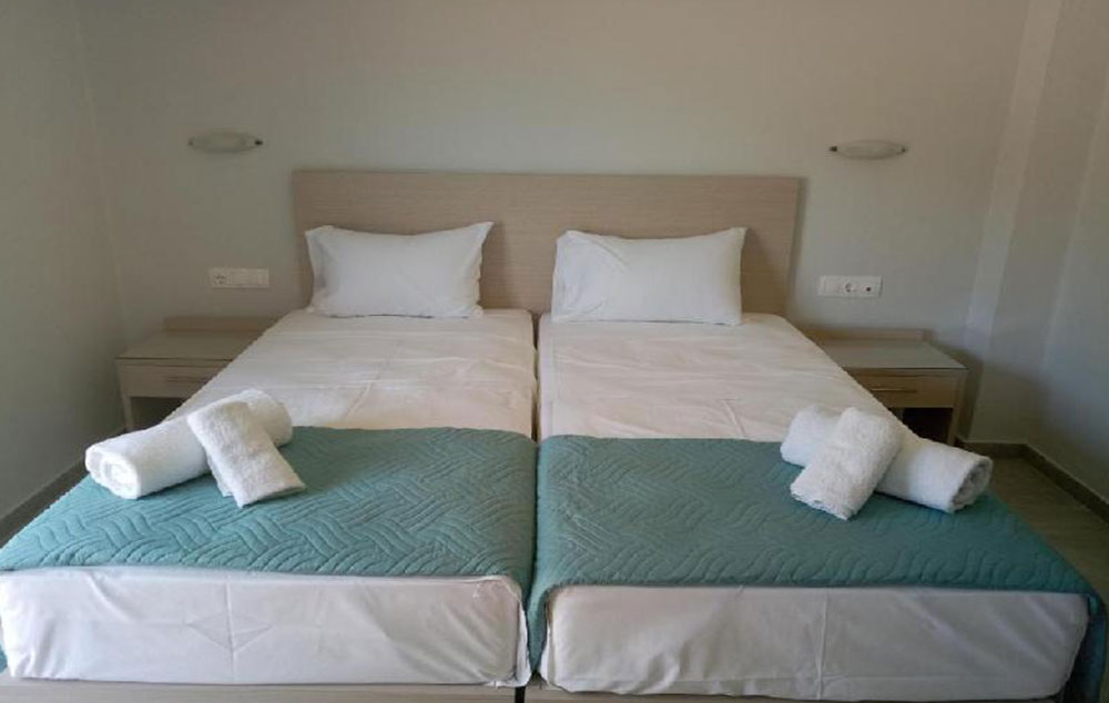 Hotel poseduje svega 40 soba koje su nedavno renovirane. Standarne sobe (18m2) mogu da prime maksumum dve odrasle osobe i sadrže francuski ležaj ili dva standardna ležaja. Sve sobe sadrže klima uređaj (uz doplatu 8 evra dnevno), sef (uz doplatu 3 evra dnevno), mini frižider, SAT tv, kupatilo sa tuš kadom, fen za kosu, balkon ili terasu.