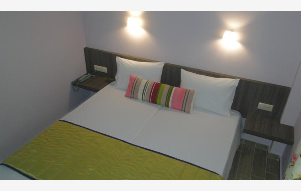 Triple room-sastoji od 2 singl kreveta spojena 90cm k 200cm i sofe 80k190. Veličina sobe je oko 17 m2. Sve sobe su na spratu. Hotel ima tri sprata i lift. Kupac može uživati u doručku a la carte uz doplatu.