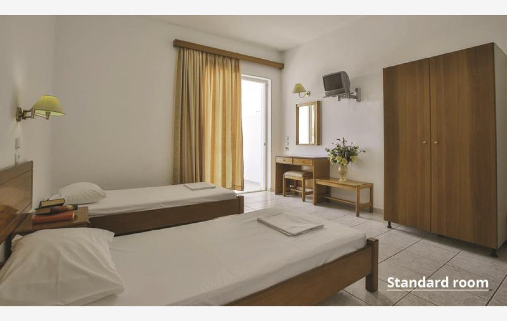 Hotel raspolaže sa 78 smeštajnih jedinica. Sve sobe su po svojoj osnovnoj strukturi dvokrevetne, dok ostali ležajevi mogu biti pomoćni. Sadrže kupatilo, fen, klima uređaj (besplatno), frižider, Sat TV, telefon, balkon ili terasu. Standardne sobe površine oko 26m², namenjene za smeštaj 2 do 3 osobe, sadrže francuski ležaj ili dva standard ležaja i dodatni ležaj namenjen za treću odraslu osobu ili dete koji može biti pomoćni. Bebi krevetac je na raspolaganju gostima besplatno (obavezna najava prilikom rezervacije).