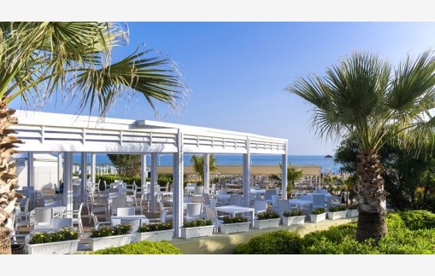 Plaža: Hotel poseduje sopstvenu peščano-šljunkovitu plažu koja se nalazi na 500m udaljenosti od hotela (postoji podzemni tunel). Za goste hotela ležaljke i suncobrani su besplatni, peškiri uz doplatu. Bar na plaži uz doplatu.