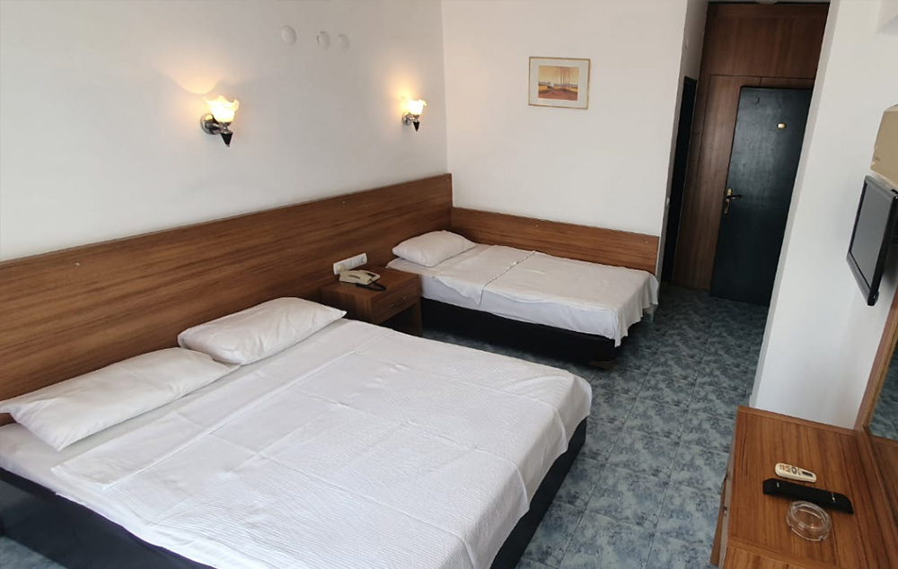 Standardne sobe poseduju kupatilo (tuš, WC, fen za kosu), klima uređaj, telefon, TV i balkon. Maksimalno borave 3 odrasle osobe.