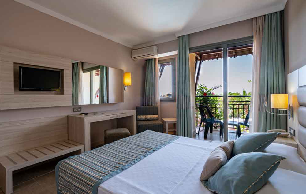 Smeštaj: Hotelski kompleks čine glavna sedmospratna zgrada i pet dvospratnih vila koje imaju ukupno 358 soba. U glavnoj zgradi se nalaze standardne sobe sa pogledom na kopno ili more i porodične sobe, dok se u vilama nalaze vila standardne sobe i vila porodične sobe. Hotel poseduje i sobe za osobe sa posebnim potrebama.