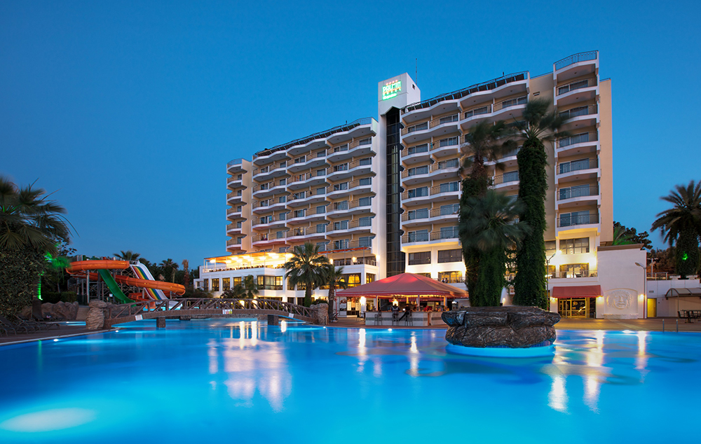 Hotelski sadržaj: recepcija, lobi, restoran, bar, menjačnica, otvoreni bazen sa dečijim odeljkom, tobogani, dnevna i večernja animacija, mini klub za decu, dečije igralište, TV sala, stoni tenis, pikado, parno kupatilo, sauna, jacuzzi, fitnes sala, wifi u holu hotela, parking.