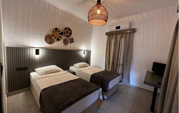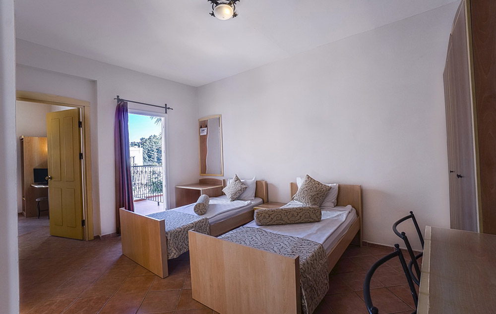 Sobe: Hotel ima na raspolaganju standardne sobe koje su dimenzije 18m2 i porodične sobe dimenzija 36m2, Standard sobe imaju kupatilo, fen, klima-uređaj, TV, telefon, mini-bar (prazan), balkon ili terasa. Maksimalno borave 2 odrasle osobe i 1 dete do 13 godina. Porodična soba ima dve prostorije, jedna prostorija je dnevna soba a druga spavaća soba. Isto su opremljene kao standard sobe. Maksimalno borave 4 odrasle osobe.