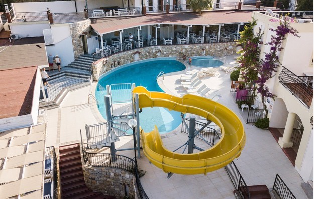Sadržaj: recepcija, restoran, a la cart restoran, bar, bar pored bazena, snek bar, mini club za decu od 4 do 12 godina, igralište za decu, bašta, terasa za sunčanje, spoljašnji bazen sa toboganima, dečiji deo u bazenu, menjačnica, igraonica, bilijar, šah, pikado, parking, WI-FI internet u lobiju i oko bazena, sef na recepciji (uz doplatu)