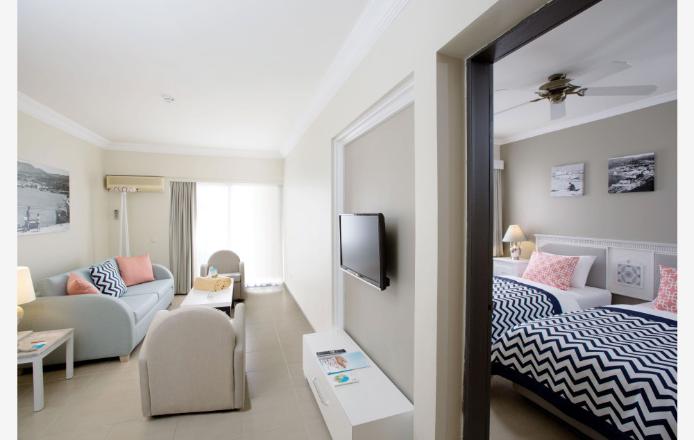 Suite sobe sa pogledom na kopno ili bazen imaju oko 41m2 i poseduju kupatilo (tuš, WC, fen za sušenje kose), klima uređaj, SAT TV, telefon, mini bar (uz doplatu), sef, balkon, wifi. Maksimalno borave 3 odrasle osobe.