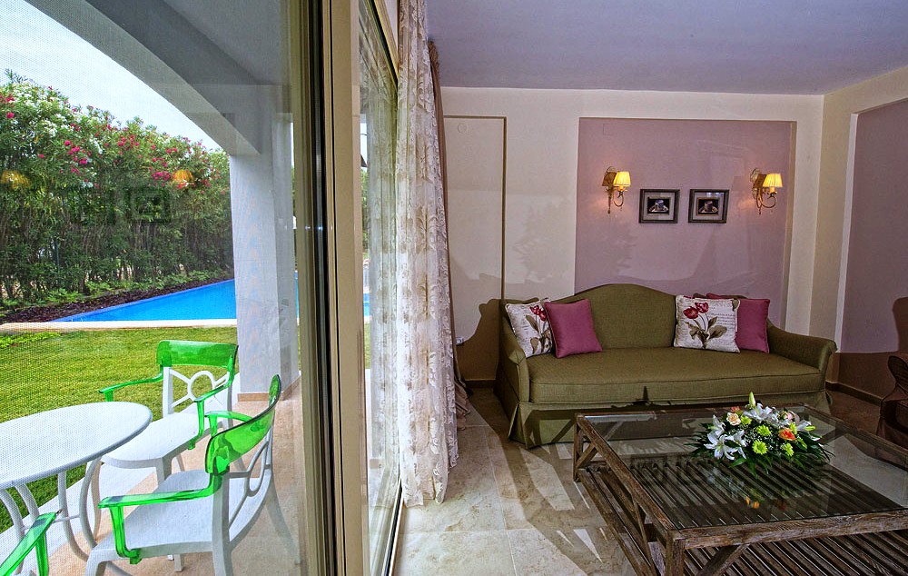 Premium garden view – oko 30m2 sa pogledom na baštu ili bazen, razbacane su po celom odmaralištu. Nude udoban smeštaj sa francuskim ili dva odvojena ležaja I sofom na razvlačenje za decu.
